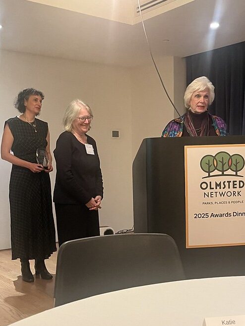 Betsy’s husband, Dr. Gary Gross, and son Andrew Gross Gaitan accepted on her behalf, offering warm reflections on her lifelong passion for public spaces before the Olmsted Network announced the creation of the Betsy Shure Gross Impact Fund, designed to offer rapid financial support to partners facing emergency needs.