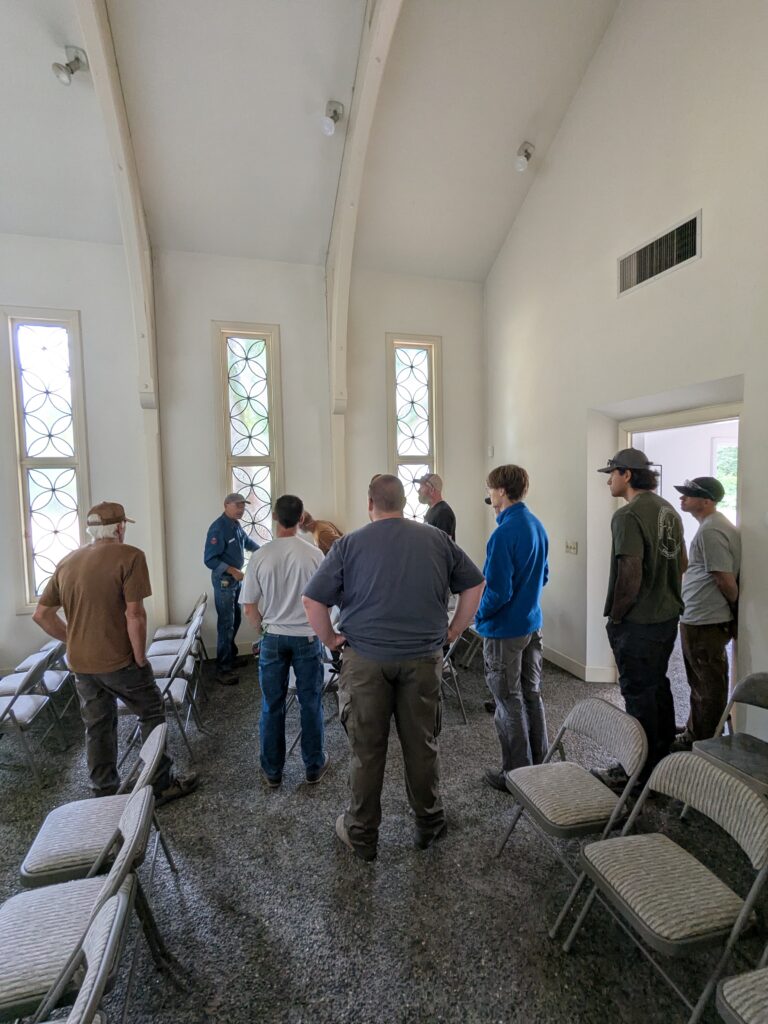 Wood Repair workshops were conducted by Al Williams, whose 32-year career began in 1984 at Grand Teton National Park. As former Principal Preservation Specialist and Trainer at the National Park Service’s Western Center for Historic Preservation, Al brought decades of experience in historic window and door construction, millwork replication, and building assessment to Elk Rock Garden. His expertise proved invaluable as students repaired our front entry columns and chapel windows, and refinished our front and back entry doors, including adjacent wooden screen doors.