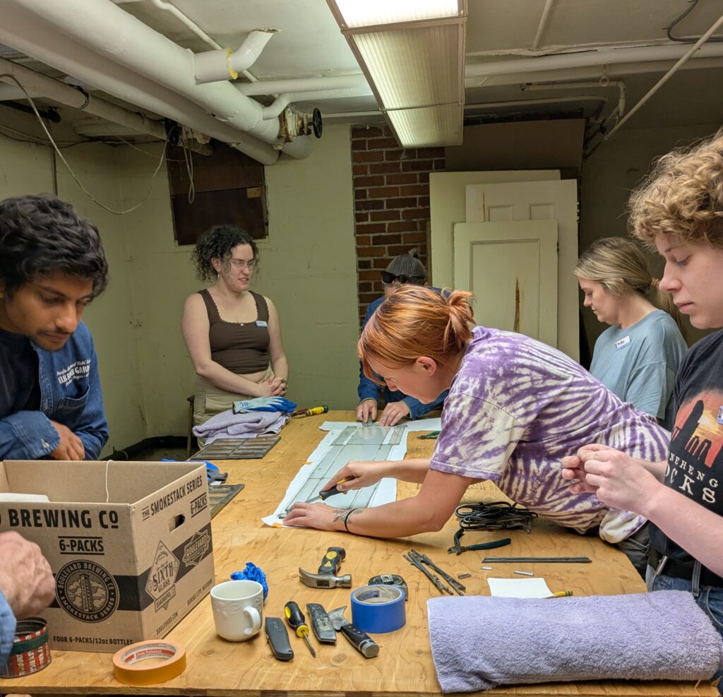 Woodworking instruction came from Field School director Allison Geary, who helped students create a specialized jig to facilitate repair of the property’s woven mahogany radiator covers.
