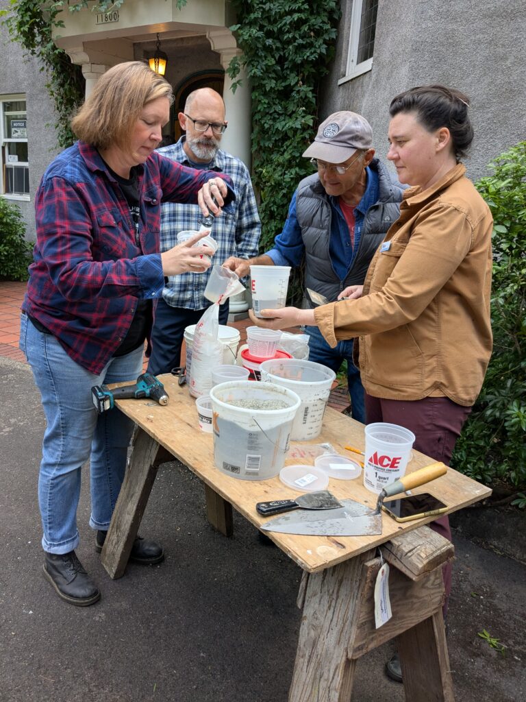 Despite limited plumbing, the property proved to be an ideal setting for hands-on preservation education, with garden visitors delighting in watching the students work and eagerly asking questions.