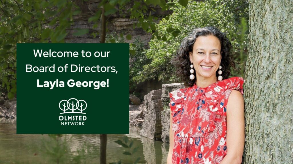 The Olmsted Network is thrilled to welcome Layla George to our board of directors. George led Louisville’s Olmsted Parks Conservancy for seven years, during which she expanded its staff, diversified the board, and grew fundraising. She now heads the ambitious redevelopment of Louisville’s Belvedere and byGeorge Consultants.