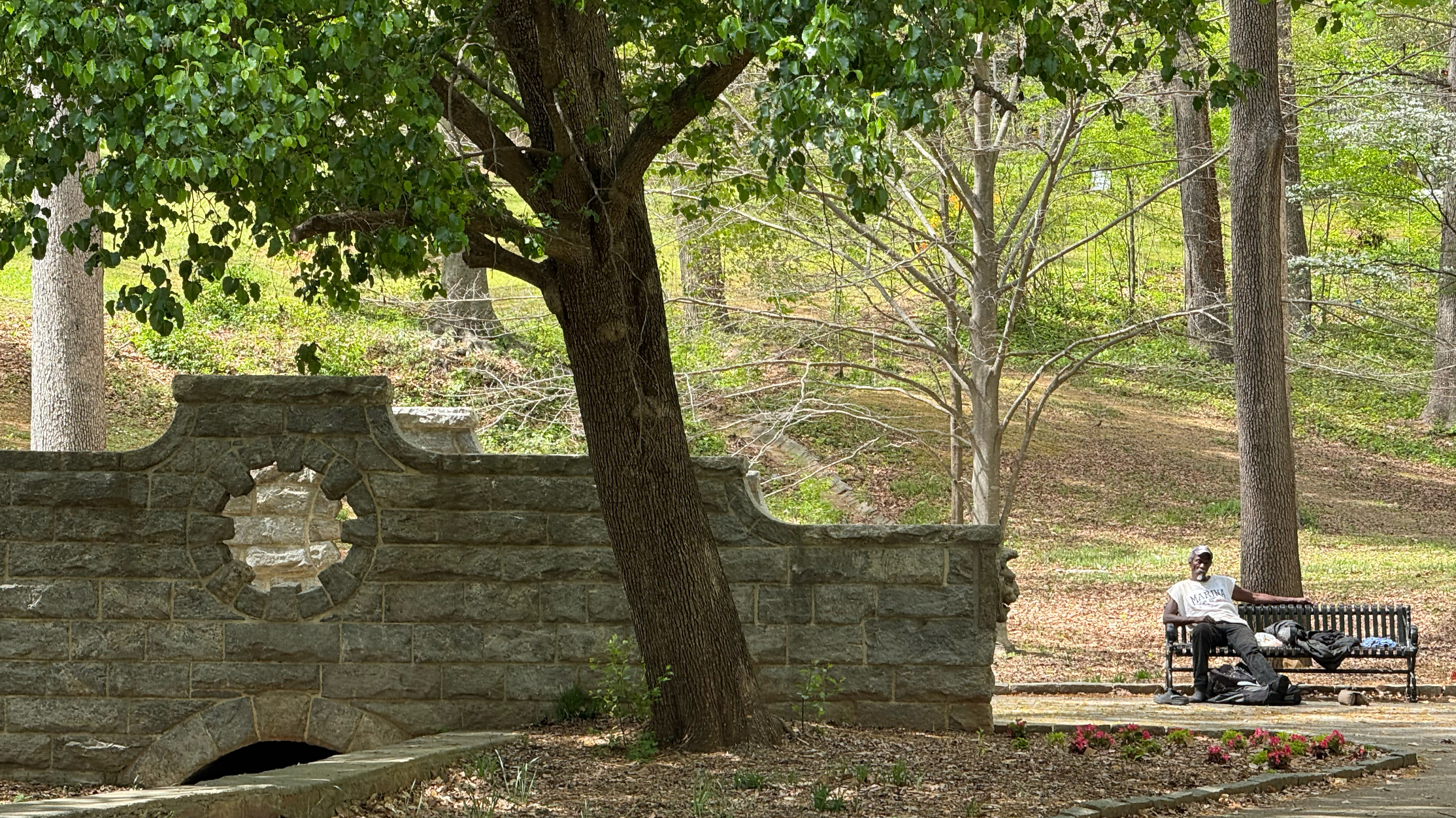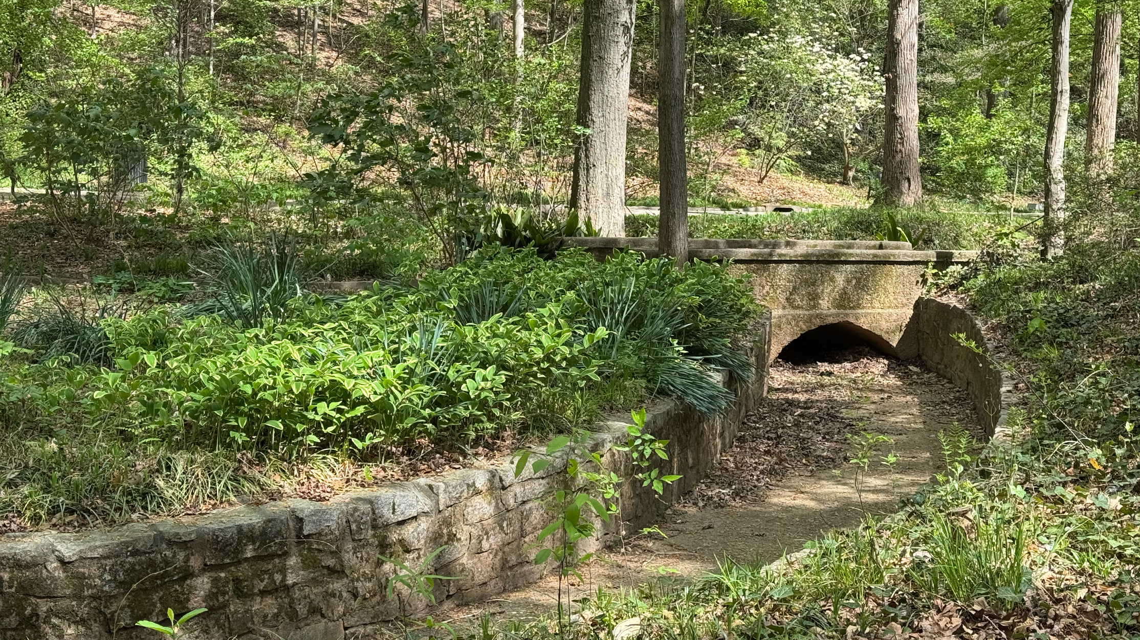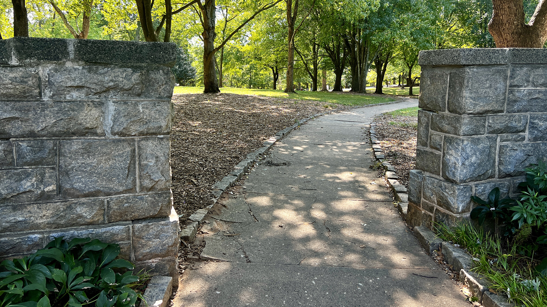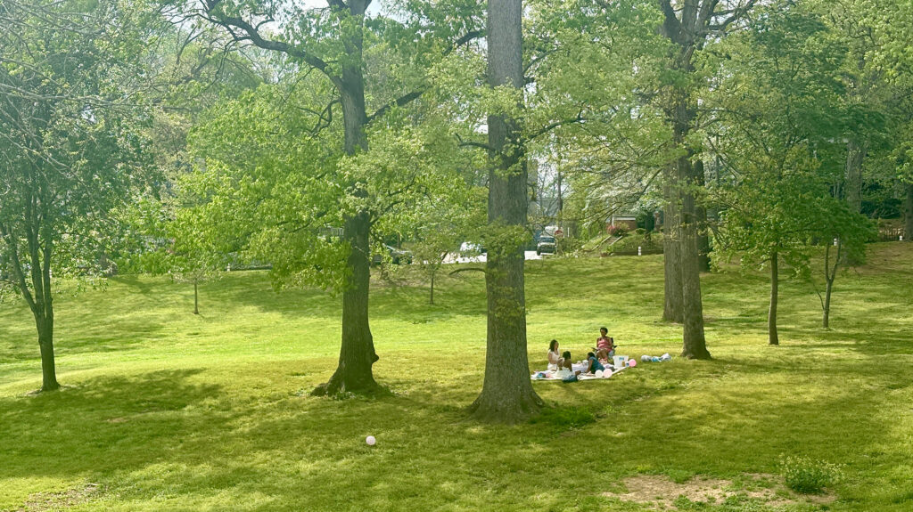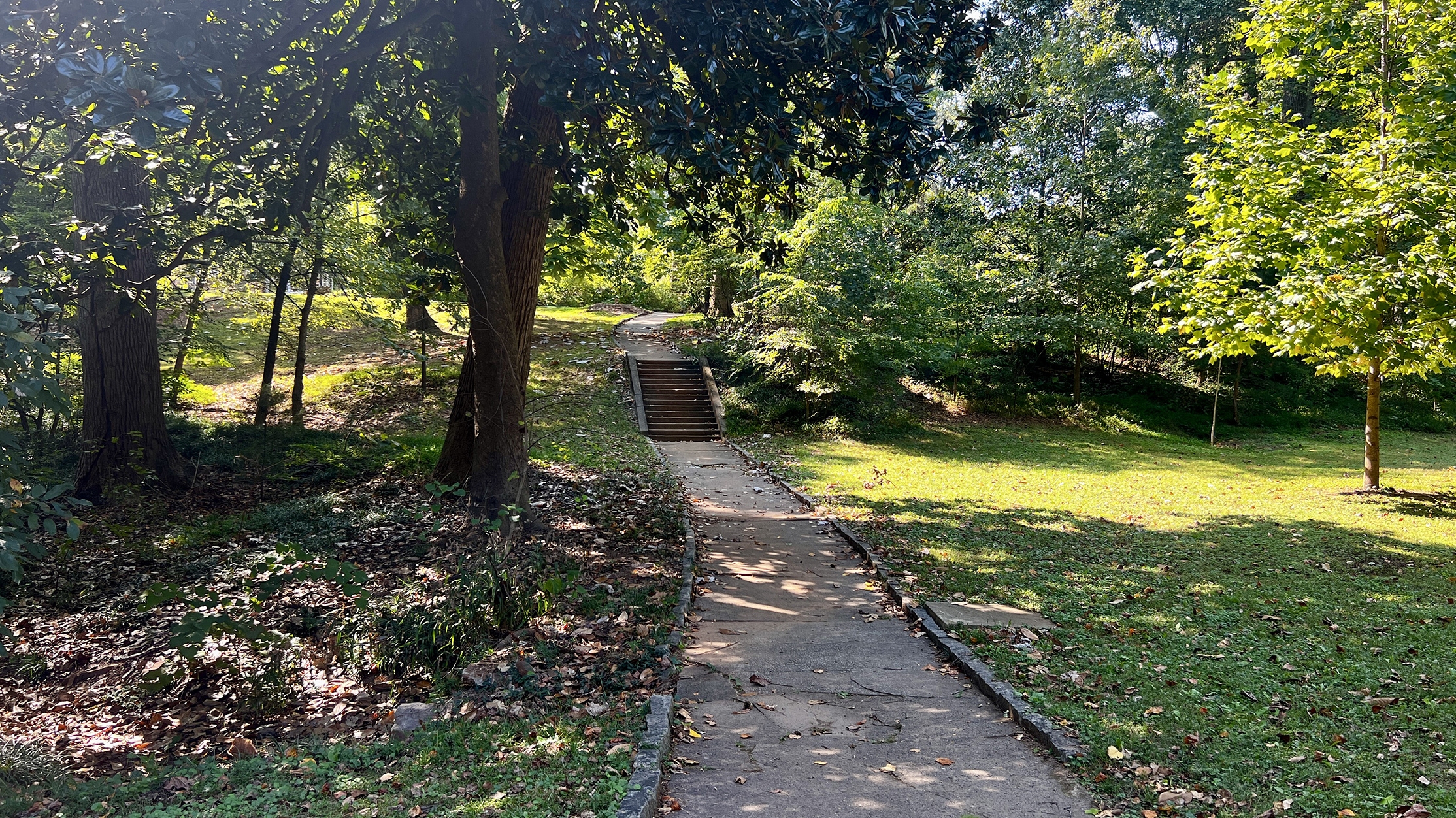Olmsted noted the high quality of the homes in the area and the monotony of oak trees covering the parkland. He proposed a naturalistic planting scheme, which carved out glades by thinning the existing stand of trees and replacing it with a diverse understory planting.