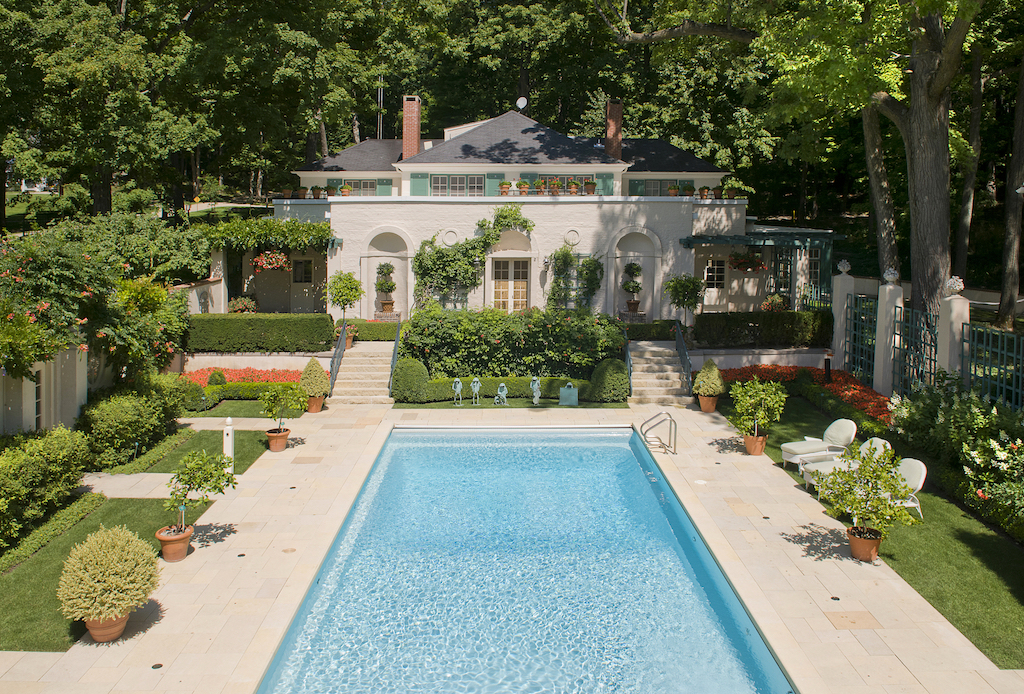 In 1905 J.C. Olmsted visited the site of A. C. Bartlett’s property in Lake Geneva, WI. Later that same year he prepared a preliminary plan for the grounds of the property (plan 03038-8) and advised that the home ‘be placed with its southerly front approximately parallel with the shoreline…a condition which is almost essential to a well balanced view and and to afford a feeling of harmony in the relation between the house and the lake.” [J.C. Olmsted to A.C. Bartlett_ 05-02-1905_LOC-OAR-B-03038_im.16] The rectangular plot of land allowed for a long approach to the house and the grounds featured two vegetable gardens, an automobile house, and a gardener’s stable.
