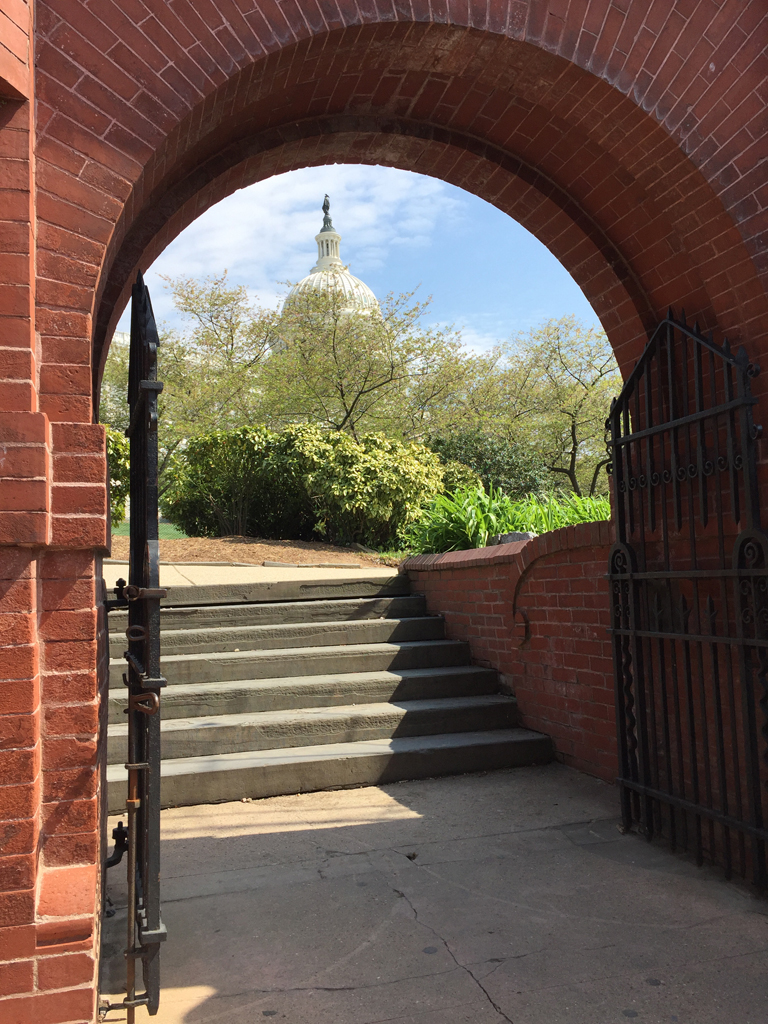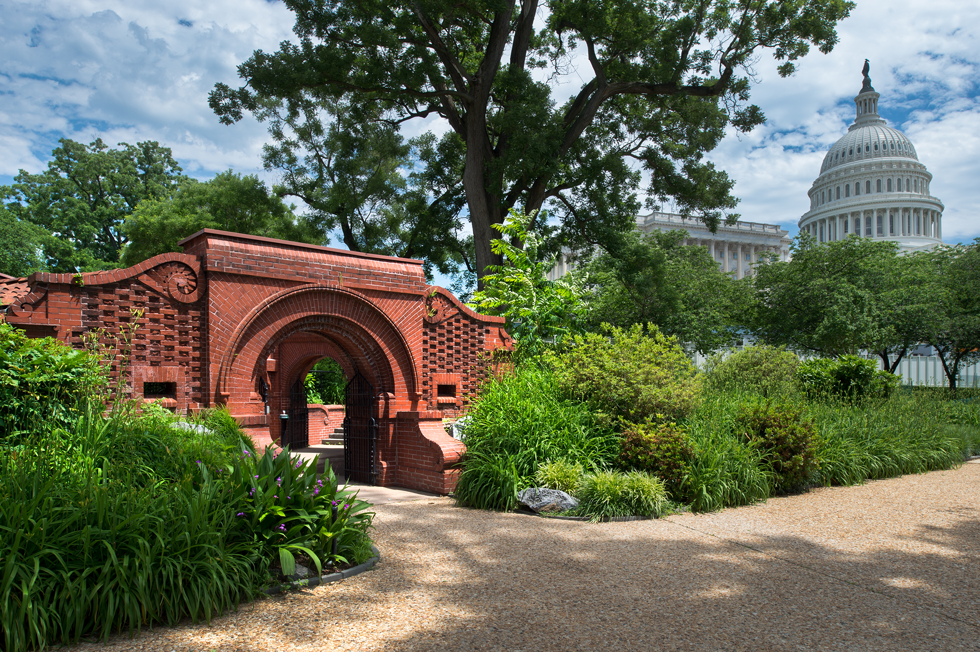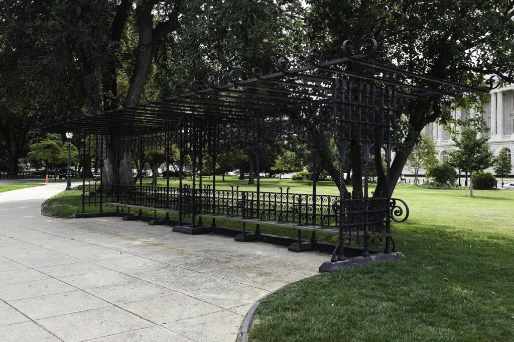 The northern part of the grounds offers a shaded walk among trees, flowers and shrubbery that leads to a small, hexagonal brick structure, named the Summerhouse. It was included in Olmsted’s design in response to complaints that visitors to the U.S. Capitol could not find water or a place to rest on their journey.