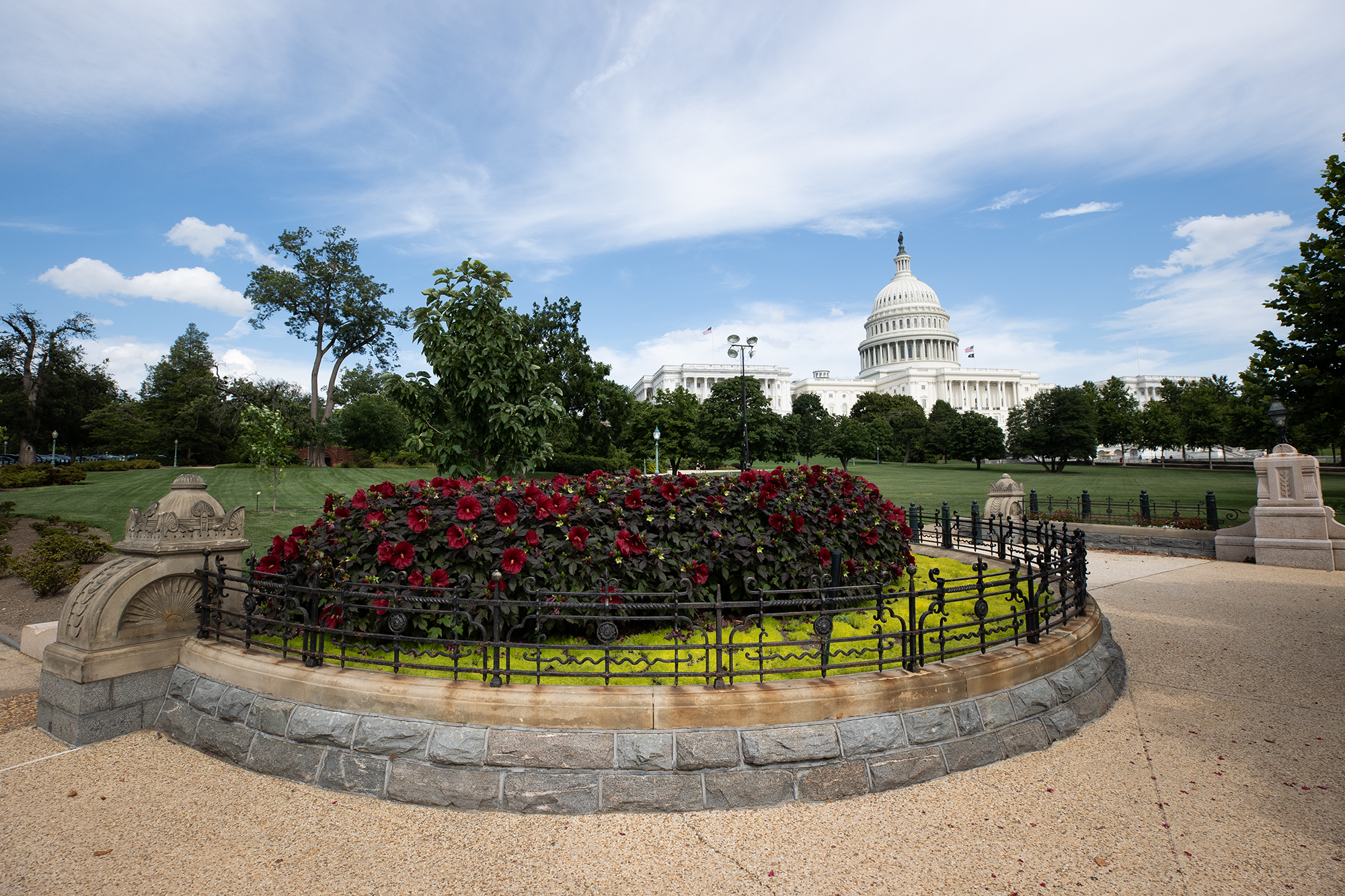 Olmsted wanted his design to complement and highlight the U.S. Capitol Building and created a natural landscape that incorporated open terraces, park-like edging, low walls, lamps, careful placement of trees and shrubs. A comprehensive circulation system, with a series of curved walkways, was planned to offer strategic views of the U.S. Capitol and attract attention to the commanding architecture and beauty of the building.