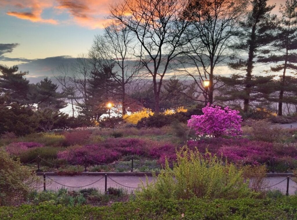 Since its dedication in 1935, Fort Tryon Park has been a cherished destination for New Yorkers. The triple-landmarked park features eight miles of pathways for walking and running, expansive lawns, and Manhattan’s largest public garden, the Heather Garden – the largest public heath and heather garden on the east coast. Home to over 500 plant species, the garden showcases a variety of blooms throughout the year, providing a serene and picturesque setting. The park also offers a world-class restaurant and is the home of The Cloisters Museum, a branch of the Metropolitan Museum of Art, another gift of Rockefeller, Jr.