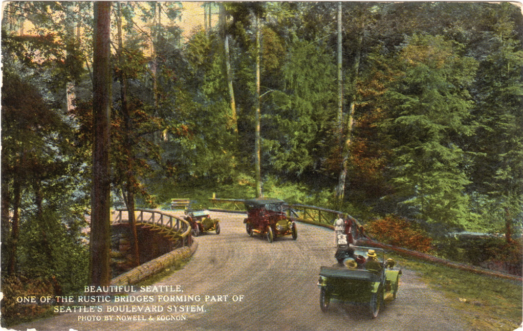 From Roanoke Park the boulevard system was intended to travel along the west slope of Capitol Hill towards downtown. Sections of this boulevard can still be experienced along Lakeview Boulevard East from Howe to Belmont Streets.