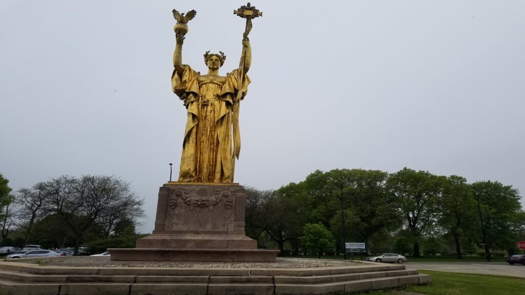 Today, the museum, a restored Japanese Garden and a 1918 commemorative version of the Statue of the Republic are visual reminders of Jackson Park’s history. Despite the significant changes currently taking place on the western edge of the park, much of the Jackson Park landscape (lagoons, historic bridges, winding paths and the Wooded Island) still reflects Olmsted’s early vision.