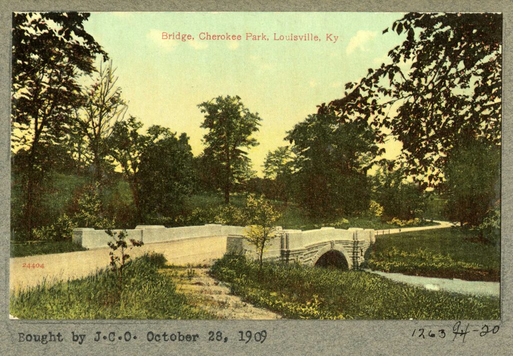 In 1891, Olmsted was invited to Louisville by a group of prominent citizens. Impressed by his ideas, the group contracted with his firm for the development of a master plan for three multi-purpose parks. Olmsted’s designs for Cherokee Park, Iroquois Park and Shawnee Park took advantage of the topographical elements unique to each sector of the city. Nearly 15 miles of tree-lined parkways connected these parks, creating access and spurring the development of nearby neighborhoods across the city.