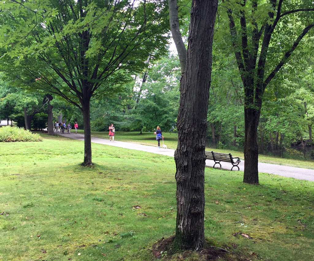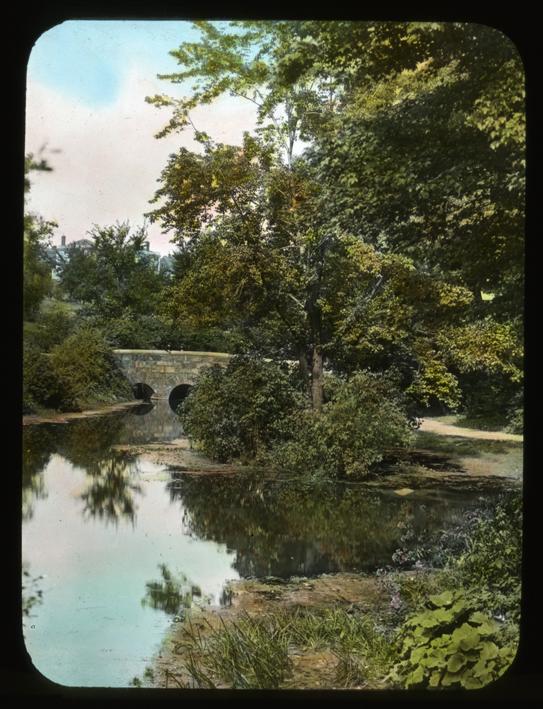 Bordered by Brookline Avenue and Jamaica Way, a parkway that links the Emerald Necklace, the park is situated between the City of Boston and the Town of Brookline.The northern and southern parkways, respectively, provided a walk way, bridle path, and 40-foot wide carriage road. A series of three bodies of freshwater, Leverett Pond, Willow Pond, and Ward’s Pond, spanned the linear landscape leading up to Jamaica Park (00920). Paying homage to its designer, the city changed the name to Olmsted Park in 1900. See also job #00923.