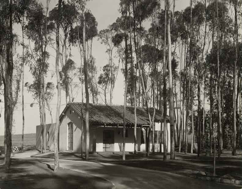 The Sub-station for Edison Co was designed to blend with the residential neighborhood. Thus it has the scale and setting of a small house.