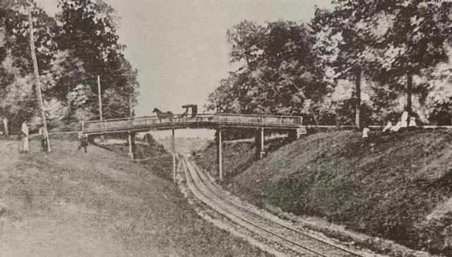 Olmsted’s artful plan for Sudbrook took carriages over a narrow bridge above the rail line, after which five roads of continuous curvature fanned out. Landscaped “triangles” at intersecting roadways and greenspaces placed throughout the community provided picturesque areas and informal, shaded gathering spots for residents and holiday festivities.
