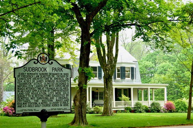 Designed by Frederick Law Olmsted in 1889, with assistance from his stepson John Charles Olmsted, Sudbrook was planned by Olmsted and its developer, The Sudbrook Company, to be a year-round suburban village.