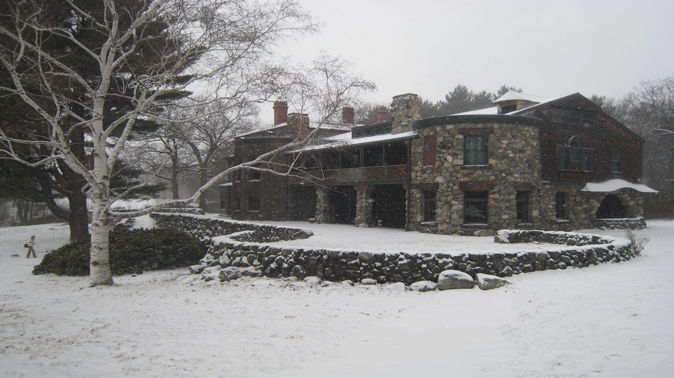 Stonehurst allowed Olmsted to experiment with the concept of “a forest lodge for the summer…bold, rustic and weather-proof…set high…supported by a terrace boldly projected…highly picturesque in its outlines and material.”